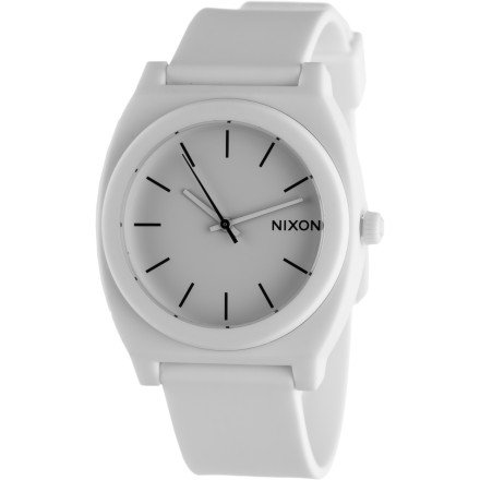 Custom 3 hand Japanese quartz Case: Custom 100 meter molded polycarbonate with hardened mineral crystal and triple gasket crown. 47.75 x 39.25mm. Band: Custom molded polyurethane with patented locking looper and polycarbonate buckle. 20mm wide. Imported. Fun and Durable Watch By Nixon 3 Hand JapanesNixon Time Teller PU Watch - Men's ( Matte White ) Do not Miss!! Custom 3 hand Japanese quartz Case: Custom 100 meter molded polycarbonate with hardened mineral crystal and triple gasket crown. 47.75 x 39.25mm. Band: Custom molded polyurethane with patented locking looper and polycarbonate buckle. 20mm wide. Imported. Fun and Durable Watch By Nixon 3 Hand Japanes... Nixon Time Teller PU Watch - Men's ( Matte White )