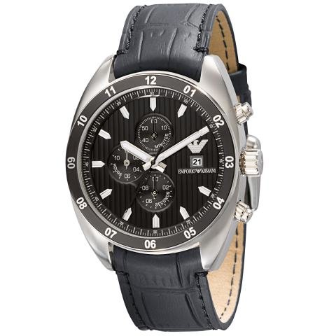 Stainless steel case with a black croco-embossed leather bracelet. Fixed aluminium bezel with Arabic numeral hour markers. Black dial with luminous hands and index hour markers. Minute markers around the outer rim. The Emprio Eagle appears near the 3 o'clock position. Luminiscent hands and markers. Emporio Armani Sportivo Chronograph Mens Watch AR5914 Do not Miss!! Stainless steel case with a black croco-embossed leather bracelet. Fixed aluminium bezel with Arabic numeral hour markers. Black dial with luminous hands and index hour markers. Minute markers around the outer rim. The Emprio Eagle appears near the 3 o'clock position. Luminiscent hands and markers. ... Emporio Armani Sportivo Chronograph Mens Watch AR5914