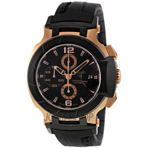 Black PVD stainless steel case with a black rubber strap. Fixed black PVD bezel. Black dial with luminous hands and index hour markers. Arabic numerals mark the 6 and 12 o'clock positions. Minute markers. Tachymeter around the outer rim. Dial Type: Analog. Luminescent hands and markers. Date displayTissot T-Race Automatic Chronograph Mens Watch T0484272705701 Do not Miss!! Black PVD stainless steel case with a black rubber strap. Fixed black PVD bezel. Black dial with luminous hands and index hour markers. Arabic numerals mark the 6 and 12 o'clock positions. Minute markers. Tachymeter around the outer rim. Dial Type: Analog. Luminescent hands and markers. Date display... Tissot T-Race Automatic Chronograph Mens Watch T0484272705701