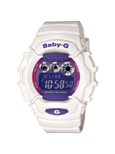 This trendy white Baby-G has vibrant purple accents with a hint of fuchsia for fun, playful accessory that can take you from the ski slopes to the beach. Baby-G shock resistant white resin strap and blue dial frame EL Backlight; World time (29 time zone and 48 cities); Countdown timer 4 daily alarmsCasio Women's BG1006SA-7B Baby-G Shock Resistant White and Blue Multi-Function Watch Do not Miss!! This trendy white Baby-G has vibrant purple accents with a hint of fuchsia for fun, playful accessory that can take you from the ski slopes to the beach. Baby-G shock resistant white resin strap and blue dial frame EL Backlight; World time (29 time zone and 48 cities); Countdown timer 4 daily alarms... Casio Women's BG1006SA-7B Baby-G Shock Resistant White and Blue Multi-Function Watch